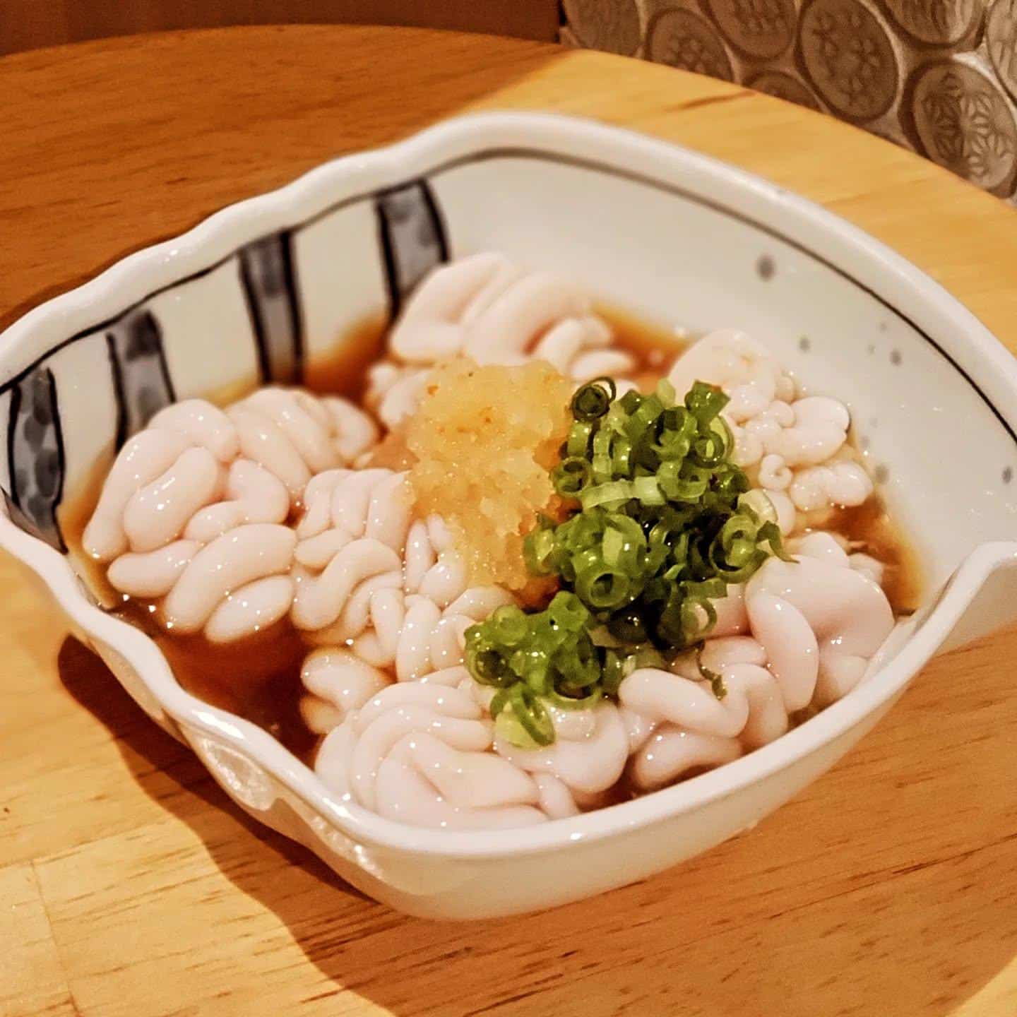 . 【秋のおすすめ⑩】 . おすすめのお料理紹介。 ”タラの白子ポン酢”です。 . 冬が近付いている感じがしますねー ワタシは”雅楽代 月華”で合わせました! . 是非お店でご賞味ください!! . .