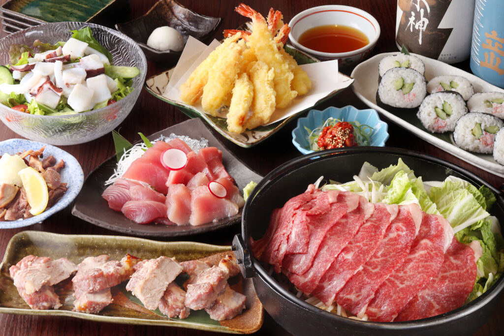 柳橋市場買い入れた最高の鮪(まぐろ)をご提供、三重県産の伊勢醤油・和歌山県産の湯浅醤油・群馬県産の正田醤油と3種類のお醤油からお選び頂けます。日本酒との相性抜群の品の数々をご用意.、メインはしゃぶしゃぶのコースとなっております。